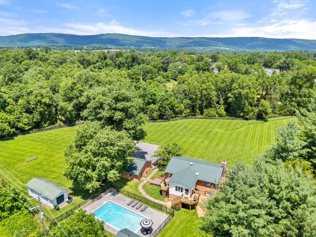 Rare village offering with acreage and views! Tucked away on a quiet dead-end street on the southern edge of historic Upperville, this beautifully updated brick home offers the best of country living--peaceful, private, and within walking distance to a village favorite - the Hunter's Head Tavern. Set on 1.8 acres and offered with an adjacent 2+ acre buildable parcel, this is a unique opportunity for expanded living or future investment. Thoughtfully renovated, this split-foyer home features an open main-level layout ideal for modern living. The living and dining areas flow seamlessly into a bright, eat-in kitchen with a new oversized island, quartz countertops, LVT flooring and updated lighting. Also on the main level are the primary bedroom suite, a guest bedroom, and a stylishly renovated full bath. The lower level is designed for comfort and versatility. It includes a cozy family room with a wood-burning fireplace, two additional bedrooms (one currently used as a fitness room), a second updated full bath, and a dedicated home office complete with custom built-ins and wet bar. The laundry/mudroom includes a new built-in cubby area and ample storage with direct access to the detached garage. Outdoor living is just as special: a fenced-in pool with a charming pool house (shower + half bath), two open decks, a covered front porch, and sweeping views of neighboring protected farmland and open lawn. An oversized two-car brick garage and a separate storage shed provide additional functionality. The property is fully fenced and offers ample room to relax, entertain, or explore future possibilities. Just minutes to Route 50, this home is perfectly located for commuters yet feels worlds away. Live in the heart of Upperville, but with privacy, space, and the bonus of an extra lot.