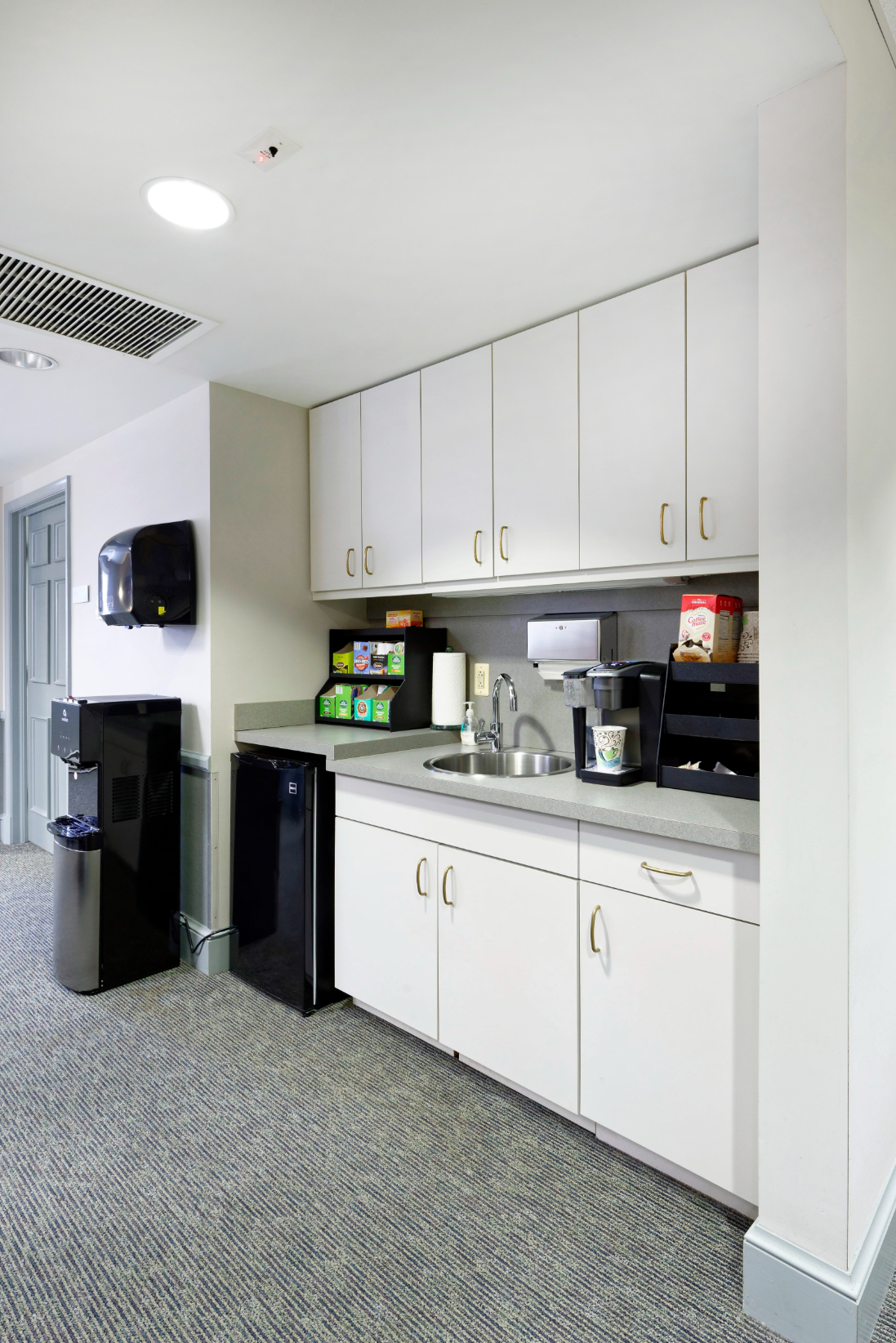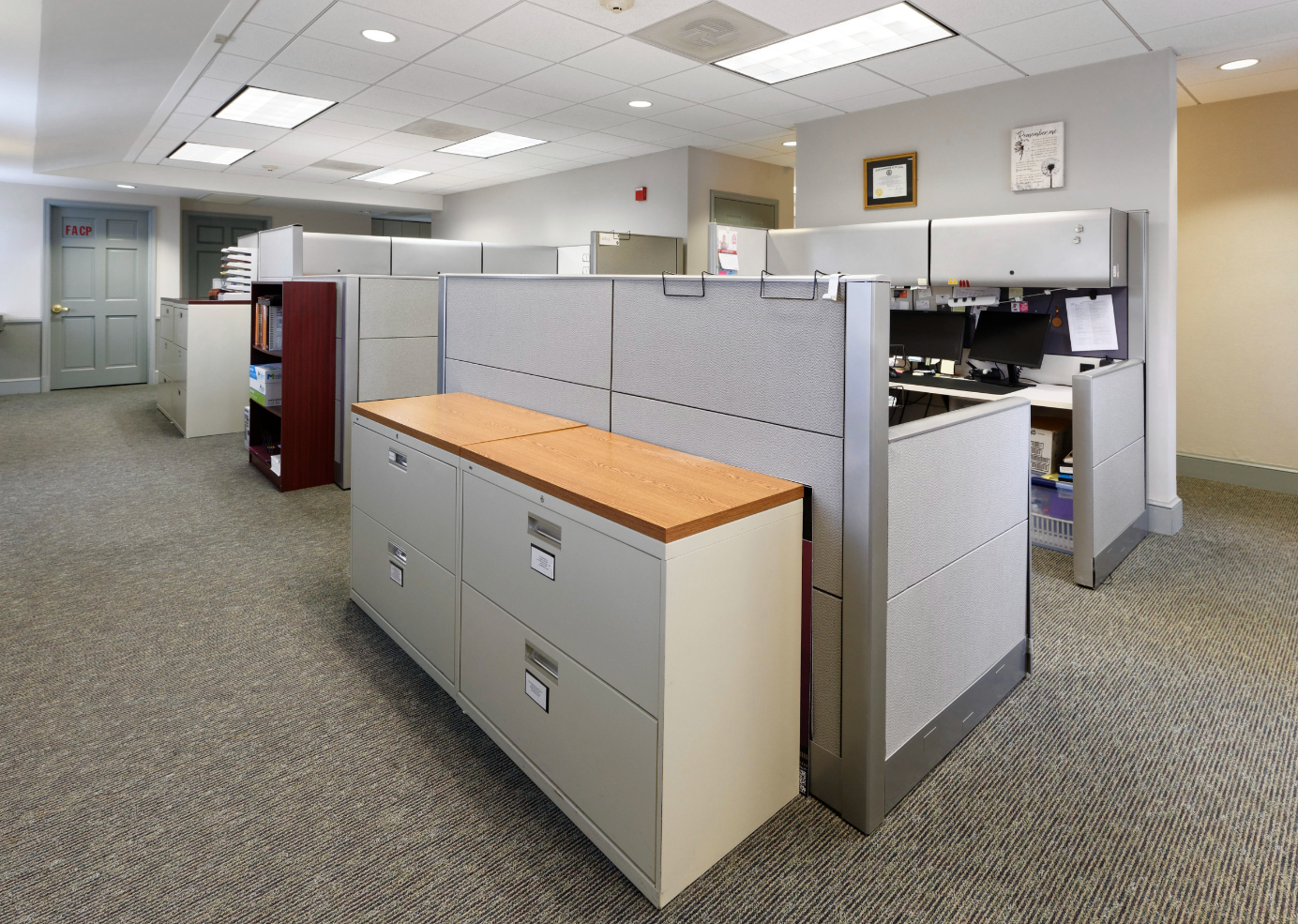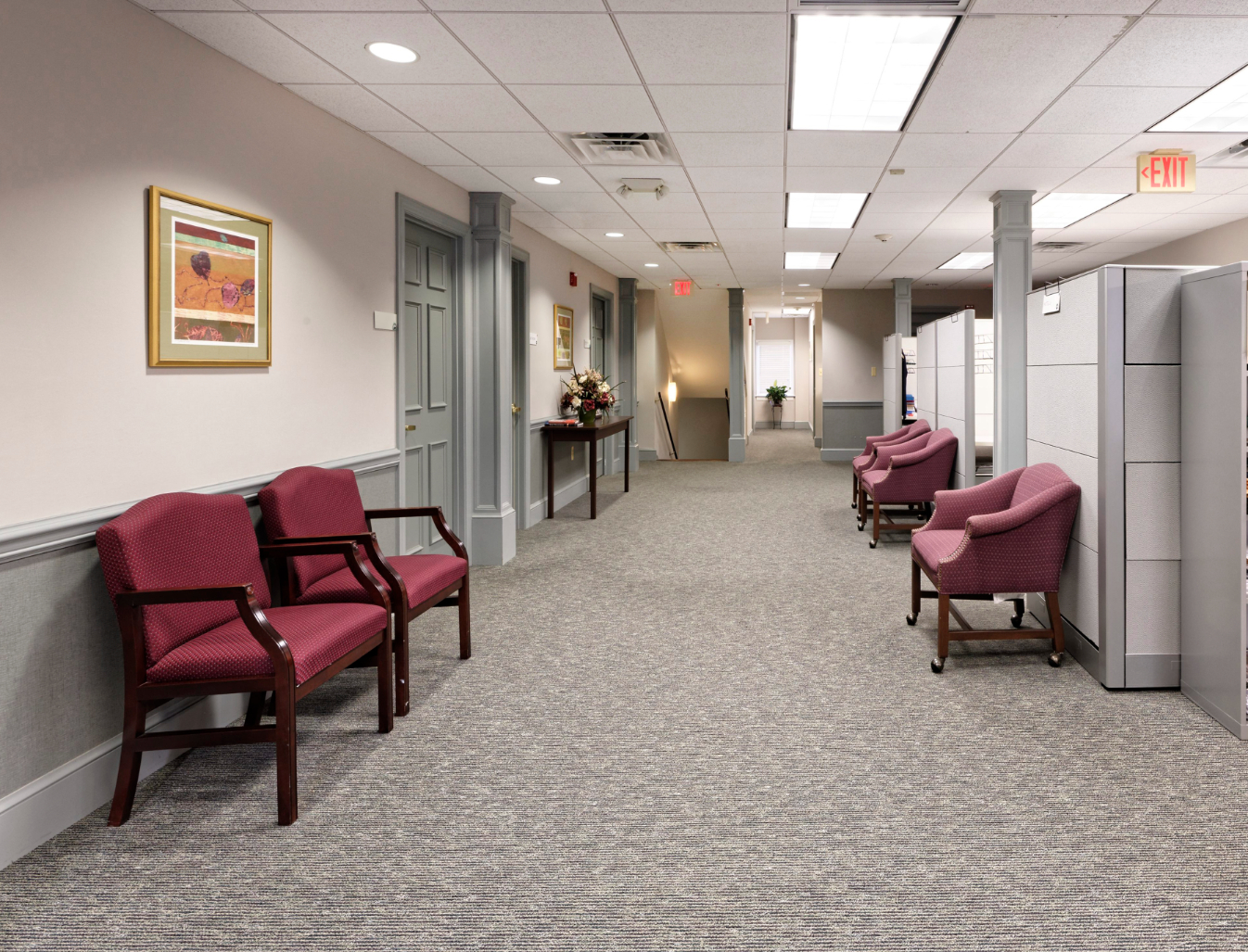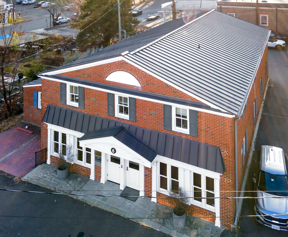 Two-story layout with front and rear entrances and staircases allows for multiple tenants or flexible use. Features include private offices, open work areas, conference rooms, three half baths, supply/copy room and large break room.  Two private parking spaces in front. Solid brick construction with standing-seam metal roof. Zoned C-2, permitting professional offices, service businesses, restaurant, retail, fitness studio, and more. Town water and sewer. Walk to restaurants, shops, grocery, and post office.