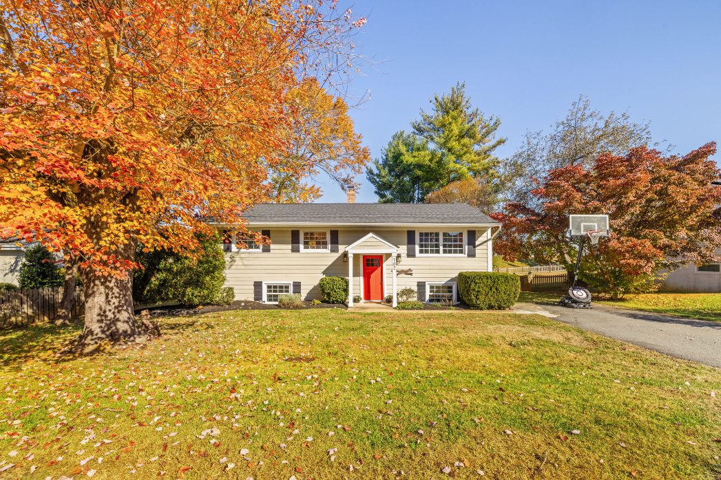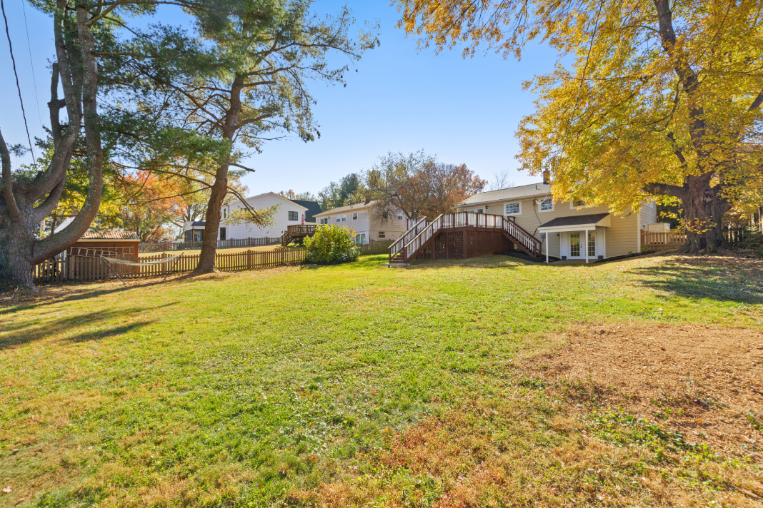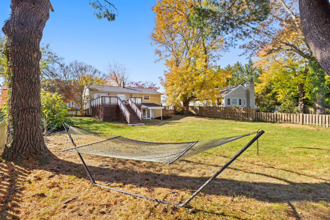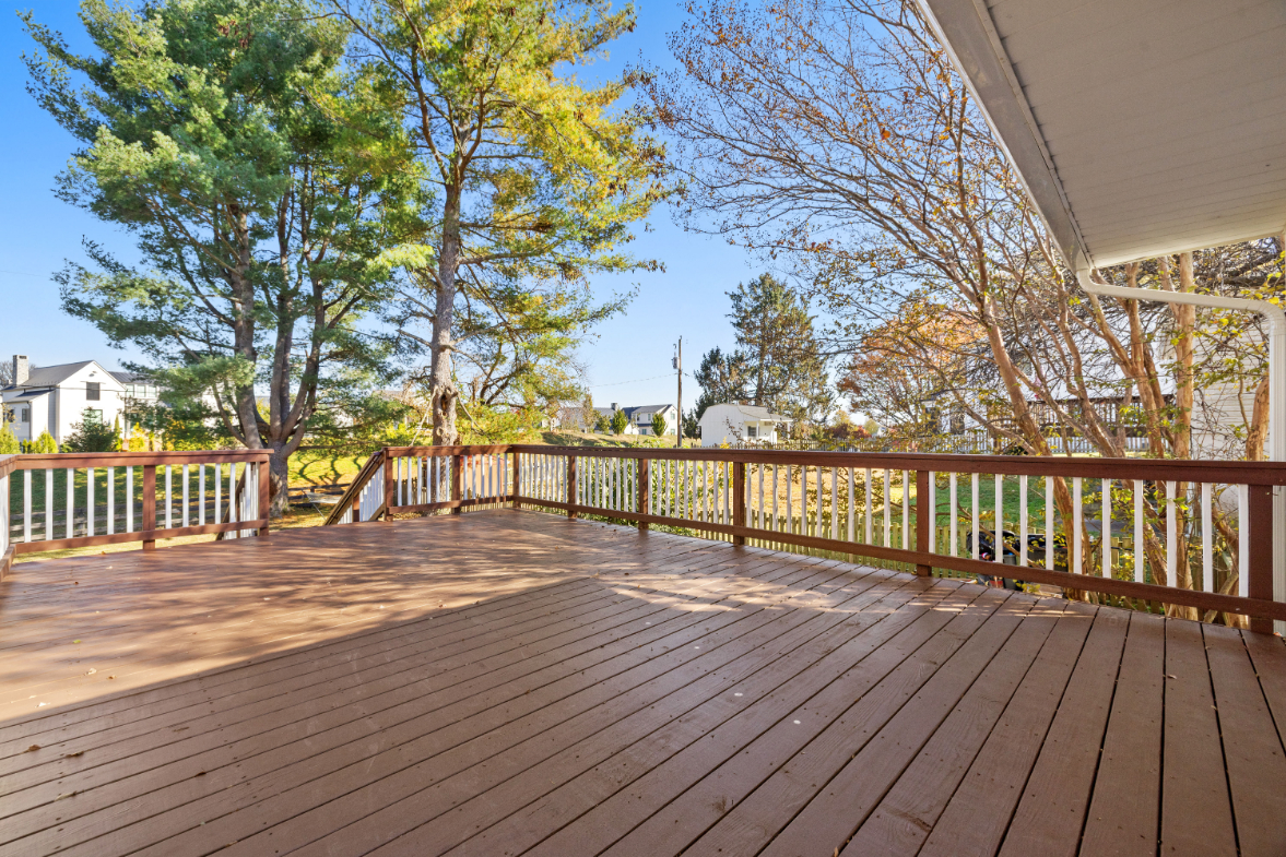 Renovated in 2021 the main level features a bright, open floorplan with beautiful hardwood floors and updated lighting throughout. The living room opens to the dining area and sunny kitchen with custom cabinets, stainless steel appliances, and quartz counters. Patio doors open onto a spacious, newly refurbished deck with stairs down to the backyard, perfect for entertaining friends and family. From the living area a hallway leads to the main bathroom, a cozy primary bedroom and two other bedrooms on this level.From the entrance foyer, stairs lead down to the fully finished lower level with laminate plank flooring and recessed lighting throughout. The flexible space offers a wet bar or efficiency kitchen, full bath, a fourth bedroom or office and utility room with washer and dryer. The spacious family room is filled with natural light and doors opening onto the covered patio and large fenced backyard.