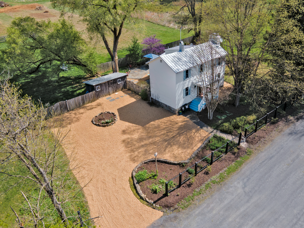 Looking for a hunt country cottage just minutes from historic Middleburg? Welcome to the aptly named "Mouse House," a fully renovated circa 1909 stucco farmhouse tucked among larger estates off prestigious Zulla Road. Set on just over an acre along a quiet dead-end gravel lane, the home enjoys peaceful pond views and exceptional privacy. This classic "2 over 2" residence offers 3 bedrooms, 2 full baths, and beautifully preserved hardwood floors, seamlessly blending historic character with modern updates. The inviting front porch opens to a welcoming foyer, flanked by a formal living room with built-ins and French doors to rear flagstone terraces, and a dining room featuring original beams and a wood-burning fireplace. The gourmet kitchen is thoughtfully updated with antique tile flooring, custom cabinetry, Carrera marble countertops, and high-end appliances. A mudroom addition with flagstone flooring and a Dutch door provides the perfect everyday entry. Upstairs are three bedrooms with the one in the center being currently used as a home office. The full bath features a custom vanity, stone sink, and tiled shower. A convenient stacked washer/dryer is also located on this level. Two spacious flagstone terraces shaded by mature trees and enclosed by privacy fencing are ideal for outdoor entertaining. The yard to the right side of the house could be an ideal spot for a swimming pool. A separate fenced garden with raised beds and irrigation, along with a renovated storage shed and additional fenced area for pets or play, complete the setting. Only minutes to Route 50 and I-66, this property offers an ideal weekend retreat or full-time residence in Virginia's storied hunt country
