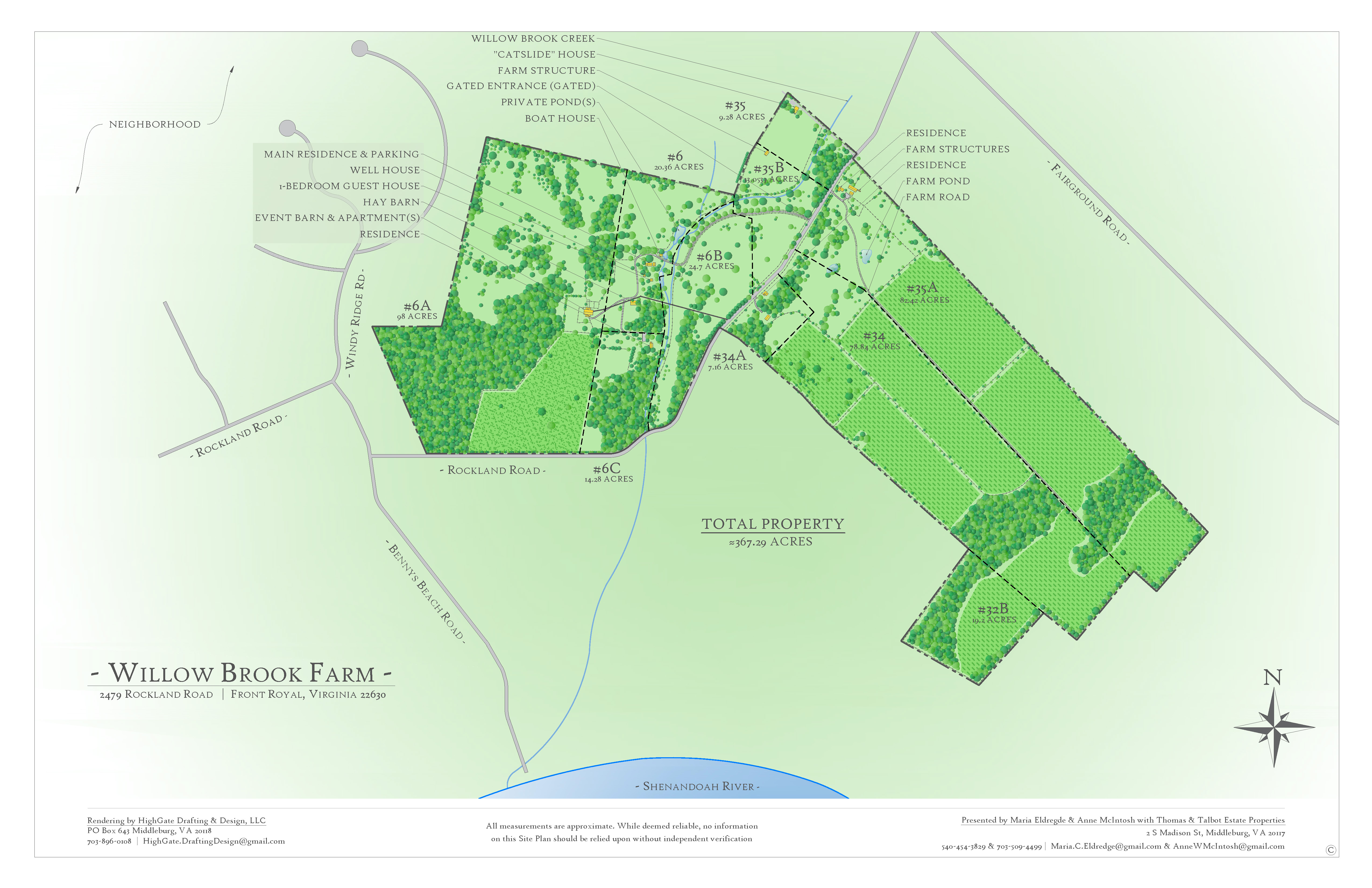 Nestled deep in Virginia's famed horse country, Willow Brook has only been offered for sale four times in 245 years. c. 1780, this historic estate is tucked away on 359 acres of serene farming country in the Rockland Rural Historic District. Just miles from Greenway Court, the first home of Lord Fairfax built in 1752, Willow Brook offers timeless beauty and quiet sophistication. The main house is situated on a lovely creek "Willow Brook" and shares its banks with a charming working stone boat house. Inside this historic stone home, you find five bedrooms, three full baths and two half baths, a library, original English basement dining room and kitchen as well as a large sitting room for entertaining. The house has original hardwood floors throughout, beamed ceilings, and four fireplaces. All of the grounds have retained much of their original configuration. Within walking distance of the main residence, you will find a boat and spring house, one bedroom guest cottage with two fireplaces, and an authentic hand hewn log smoke house. Extra facilities and dependencies include four additional houses on separate parcels. Willow Brook consists of 10 contiguous parcels on the east and west sides of Rockland Road. Additional structures include a large, beautiful barn for horses or other livestock and several sheds. The barn has an extensive workshop on the ground level and a fantastic second level finished with lovely post and beam accents for entertaining. Views from the barn of the Blue Ridge Mountains are breathtaking. The entire property is being offered as one piece and being sold AS IS. It is all in VOF conservation easement. Upon visiting the property, we can share individual plats and specific future building options available within the easement. Willow Brook would make the perfect family compound. The property is 1 hour from Dulles Airport, local shopping in Front Royal, Berryville, Winchester, and Millwood.